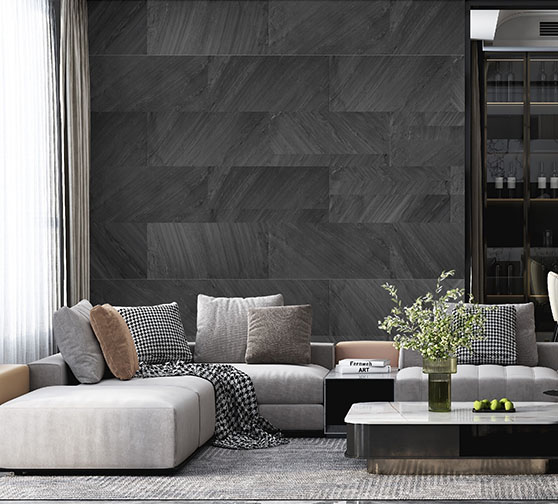 This sheet's stone originates from slatestone, boasting a satin surface with enhanced texture.